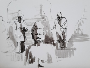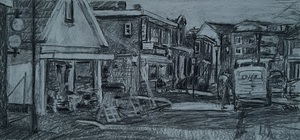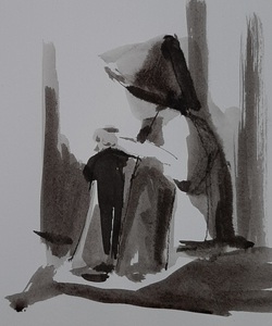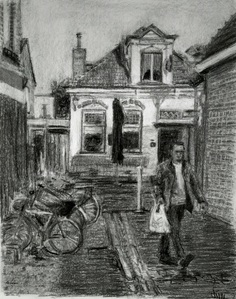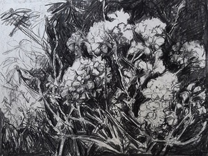 Tekeningen in houtskool, inkt en pastel