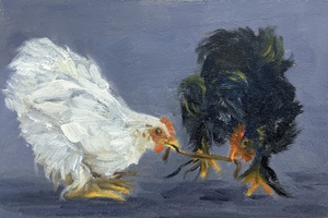Ik schilder met olieverf op linnen of op MDF. Soms ook met acrylverf op doek of MDF.